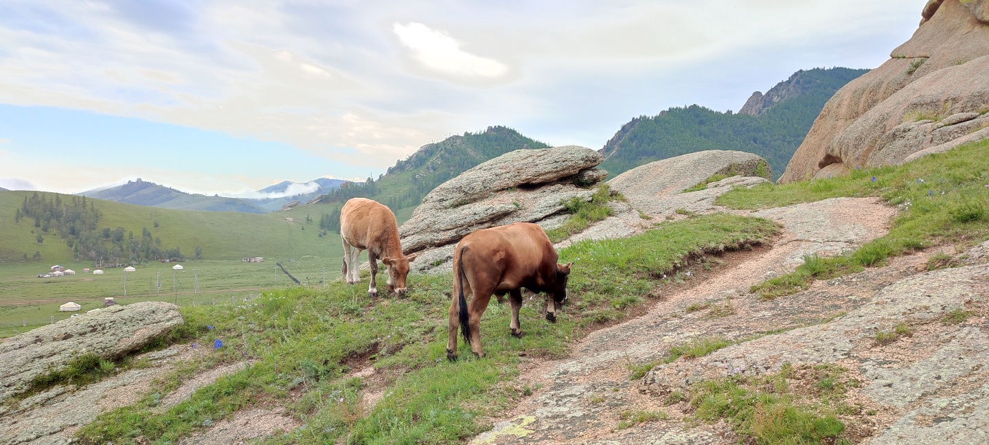 먼가 바삭바삭 소리가 나 보니 평지에 많이 보이던 말고 소들이 사람이 안보이는 새벽에 개르 주변에서 풀을 뜯고 있었음. 내가 구경을 하기 위해 나오니 동물들은 나를 피해 저 멀리 갔음 ㅜ ㅜ