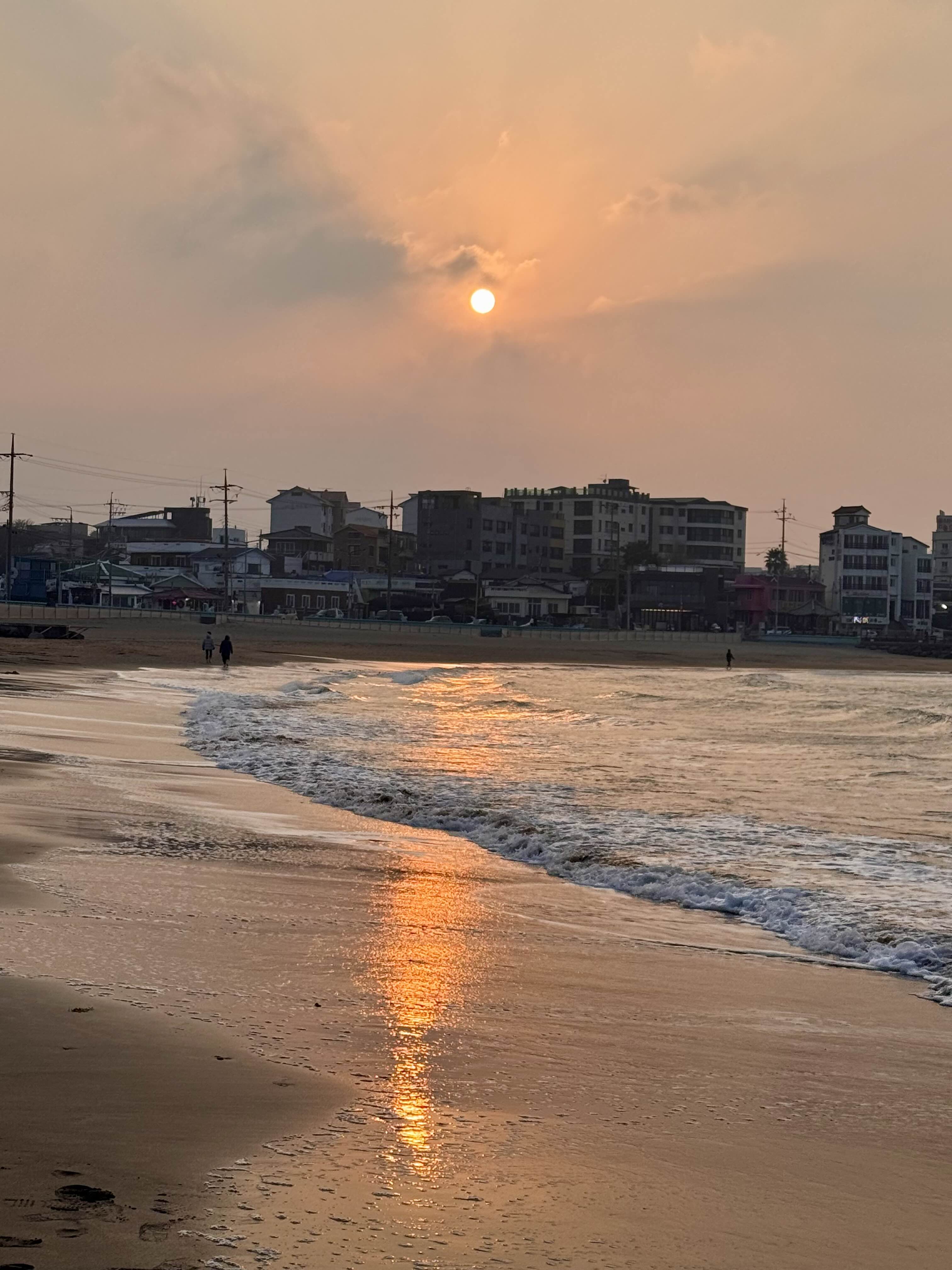 음료를 텀블러에 담아 이호등대로 걸어감.