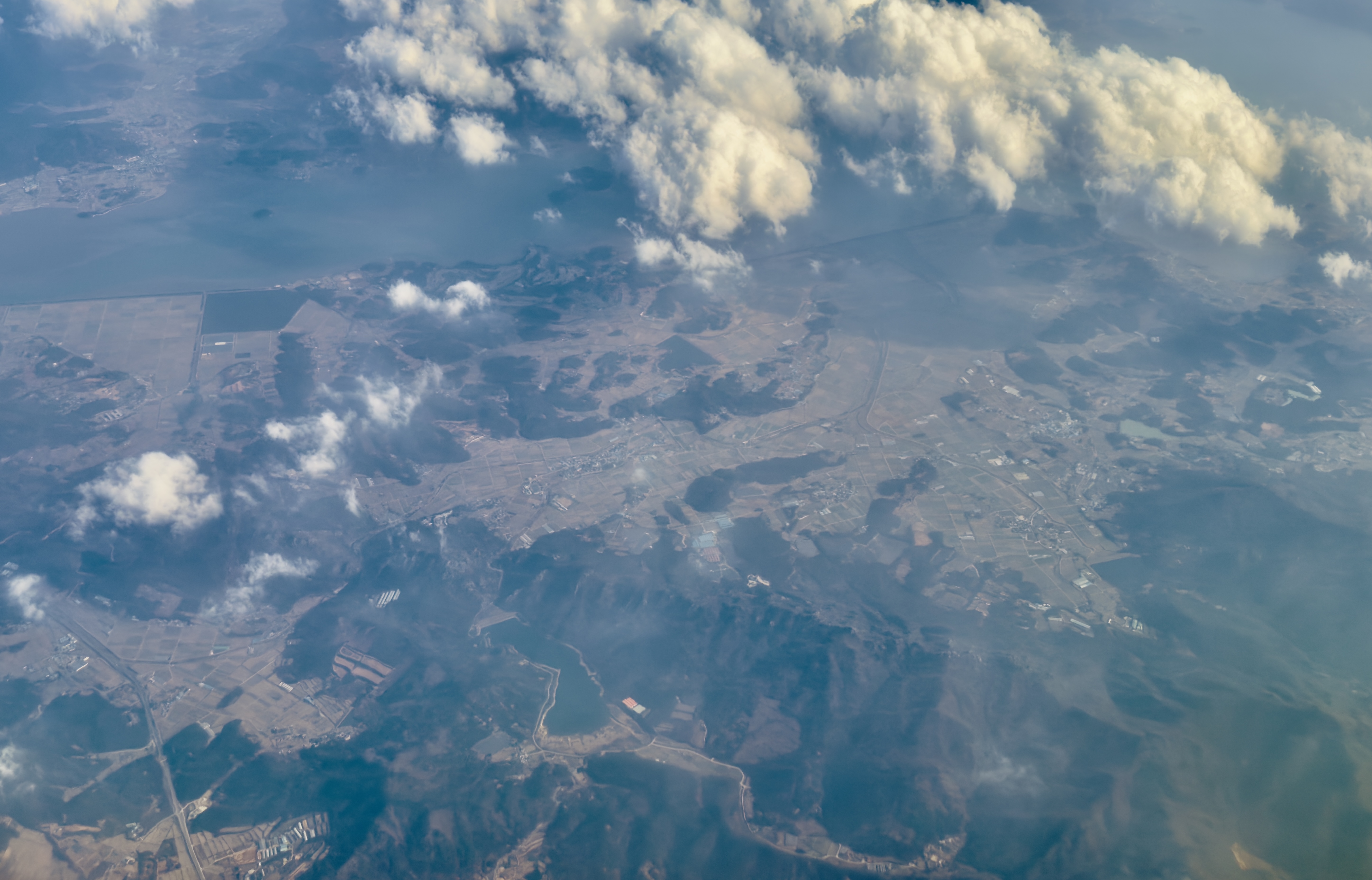 오늘 날씨가 흐리다 보니 난기류를 피해서 뱅기는 구름 위로 위로 위로 쭈욱 올라감.