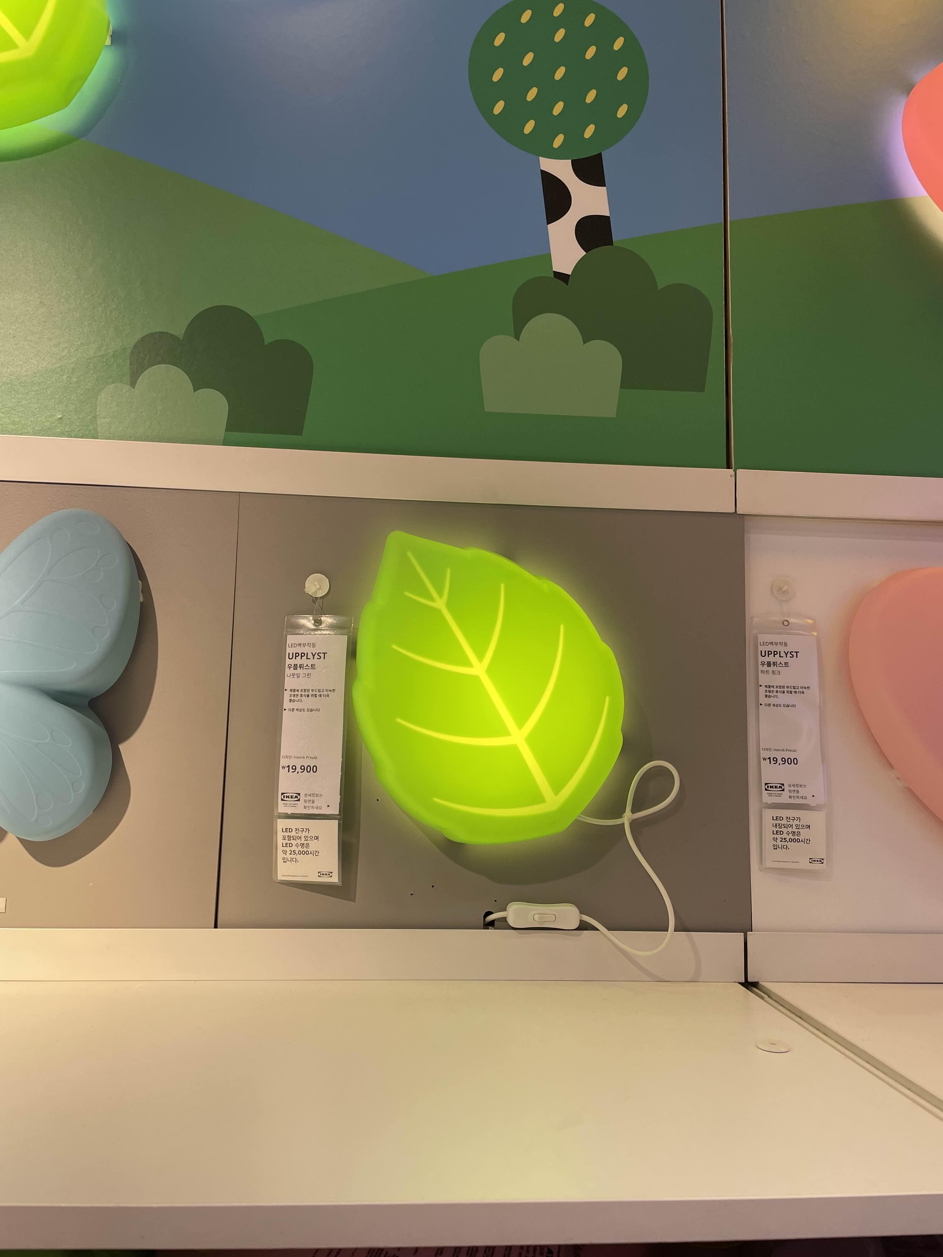 이케아의 나뭇잎 로망이 생겼는지 요 벽에 붇이는 등이 참 맘에 들었음.